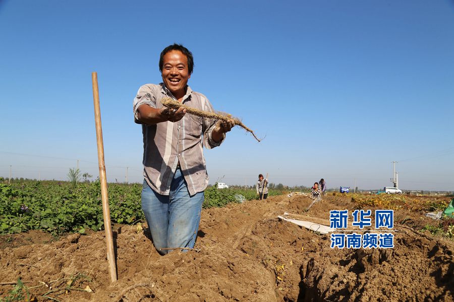 央廣網(wǎng)河南分網(wǎng)消息 霜降過后,河南省溫縣2.3萬畝鐵棍山藥陸續(xù)進入收獲期,村民們忙著采收、銷售。今年鐵棍山藥長勢看好,當(dāng)?shù)厮庌r(nóng)每畝平均收入在6000元以上。徐宏星 攝