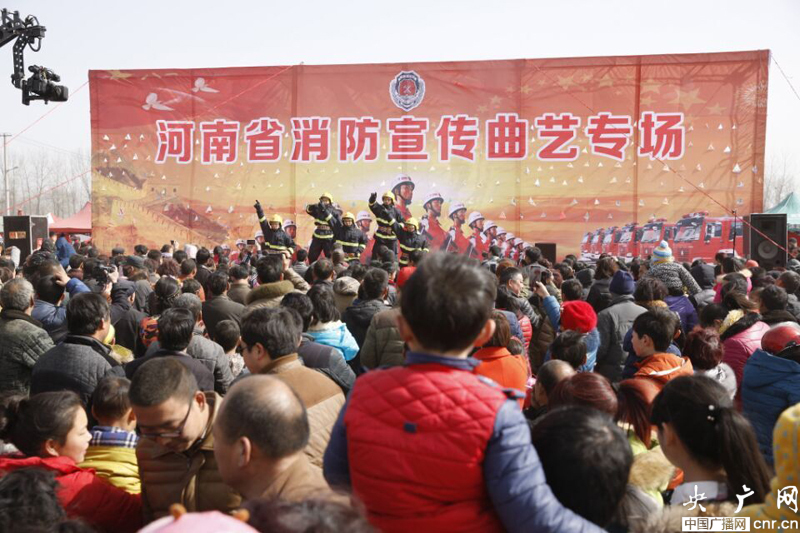 為確,F(xiàn)場消防安全。河南省消防總隊(duì)和平頂山市消防支隊(duì)出動(dòng)官兵、合同隊(duì)員、消防文員135人,消防車輛12臺,積極開展現(xiàn)場執(zhí)勤和消防安全檢查;顒(dòng)現(xiàn)場,消防人員為群眾們發(fā)放消防宣傳品10萬余份,精心準(zhǔn)備了20個(gè)節(jié)目,有歌現(xiàn)代舞、山東快書、單口評書、戲曲、相聲、快板等,每個(gè)節(jié)目精彩紛呈,引來在場群眾的連連鼓掌和叫好,期間穿插著激烈的消防有獎(jiǎng)問答環(huán)節(jié),激起了在場年輕老少學(xué)習(xí)消防知識的興趣。這種零距離、面對面的消防宣傳形式,受到了廣大群眾的追捧。