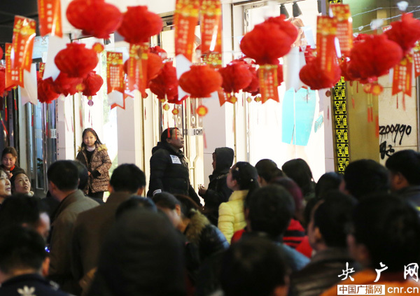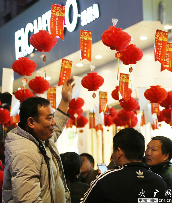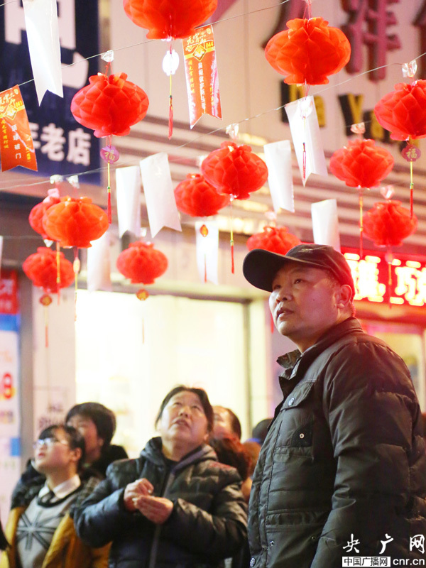 央廣網(wǎng)河南分網(wǎng)消息 2月22日,許多市民在河南寶豐人民路街頭賞花燈猜燈謎處駐足猜謎語(yǔ)迎元宵。 當(dāng)晚8時(shí),寶豐縣許多商家開(kāi)展賞花燈,猜燈謎,燈謎競(jìng)猜喜迎元宵節(jié) 。王雙正攝