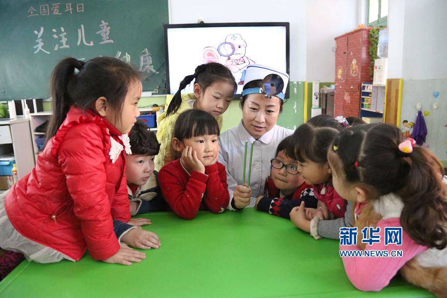 當(dāng)天,安陽地區(qū)醫(yī)院耳鼻喉頭頸外科的醫(yī)務(wù)人員來到市婦女兒童活動(dòng)中心幼兒園,給這里的小朋友上了一堂“愛護(hù)耳朵 保護(hù)耳膜 預(yù)防耳病”的科普知識(shí)課,通過耳科大夫曹阿姨詳細(xì)講解,孩子們明白了耳朵的生理結(jié)構(gòu)、保護(hù)耳朵的正確方法,以及怎么樣預(yù)防分泌性中耳炎、外耳道異物、外傷性鼓膜穿孔等常見耳病的發(fā)生。之后耳科醫(yī)生曹艷利給大三班的小朋友一一做了聽力檢查,深受老師和家長稱贊。新華網(wǎng)發(fā)(畢興世 攝)