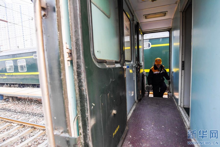 1月24日,一名調(diào)車(chē)員登上車(chē)廂,準(zhǔn)備進(jìn)行調(diào)車(chē)作業(yè)。 春節(jié)臨近,鐵路迎來(lái)節(jié)前客流高峰。鐵路運(yùn)輸工作中,離不開(kāi)一群為火車(chē)“穿針引線(xiàn)”的人——調(diào)車(chē)員,他們24小時(shí)不間斷輪班,保證列車(chē)按時(shí)出入庫(kù),并根據(jù)車(chē)次、客流的變化,對(duì)列車(chē)車(chē)廂進(jìn)行拆分和重新編組,保障春運(yùn)期間列車(chē)安全、準(zhǔn)時(shí)運(yùn)送旅客。 鄭州火車(chē)站運(yùn)轉(zhuǎn)車(chē)間調(diào)車(chē)長(zhǎng)程浩說(shuō):“我們的工作是把一節(jié)節(jié)車(chē)廂編組成一列火車(chē),將其中有問(wèn)題的車(chē)廂換掉,送檢、清洗,再將整列火車(chē)?yán)交疖?chē)站發(fā)車(chē),形象點(diǎn)說(shuō)就是為火車(chē)穿針引線(xiàn)!痹卩嵵莼疖(chē)站運(yùn)轉(zhuǎn)車(chē)間,調(diào)車(chē)小組一般由5人組成:一名調(diào)車(chē)長(zhǎng),四名組員。組長(zhǎng)負(fù)責(zé)指揮調(diào)車(chē)任務(wù),組員負(fù)責(zé)檢查和監(jiān)督列車(chē)車(chē)廂之間的分解與連掛,為車(chē)輛進(jìn)行排風(fēng)、摘管等。 春運(yùn)期間,鄭州火車(chē)站運(yùn)轉(zhuǎn)車(chē)間平均每天要對(duì)70余列近1300輛車(chē)進(jìn)行調(diào)車(chē)作業(yè),比平時(shí)增加30%左右的工作量。 新華社記者 李博 攝