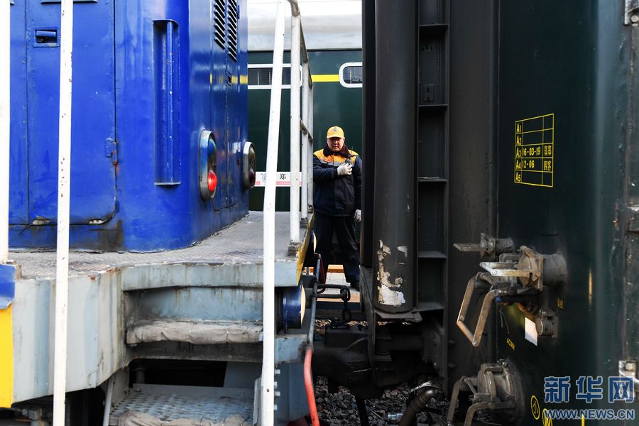 1月24日,一名調(diào)車(chē)員在進(jìn)行連掛車(chē)廂作業(yè)。 春節(jié)臨近,鐵路迎來(lái)節(jié)前客流高峰。鐵路運(yùn)輸工作中,離不開(kāi)一群為火車(chē)“穿針引線(xiàn)”的人——調(diào)車(chē)員,他們24小時(shí)不間斷輪班,保證列車(chē)按時(shí)出入庫(kù),并根據(jù)車(chē)次、客流的變化,對(duì)列車(chē)車(chē)廂進(jìn)行拆分和重新編組,保障春運(yùn)期間列車(chē)安全、準(zhǔn)時(shí)運(yùn)送旅客。 鄭州火車(chē)站運(yùn)轉(zhuǎn)車(chē)間調(diào)車(chē)長(zhǎng)程浩說(shuō):“我們的工作是把一節(jié)節(jié)車(chē)廂編組成一列火車(chē),將其中有問(wèn)題的車(chē)廂換掉,送檢、清洗,再將整列火車(chē)?yán)交疖?chē)站發(fā)車(chē),形象點(diǎn)說(shuō)就是為火車(chē)穿針引線(xiàn)!痹卩嵵莼疖(chē)站運(yùn)轉(zhuǎn)車(chē)間,調(diào)車(chē)小組一般由5人組成:一名調(diào)車(chē)長(zhǎng),四名組員。組長(zhǎng)負(fù)責(zé)指揮調(diào)車(chē)任務(wù),組員負(fù)責(zé)檢查和監(jiān)督列車(chē)車(chē)廂之間的分解與連掛,為車(chē)輛進(jìn)行排風(fēng)、摘管等。 春運(yùn)期間,鄭州火車(chē)站運(yùn)轉(zhuǎn)車(chē)間平均每天要對(duì)70余列近1300輛車(chē)進(jìn)行調(diào)車(chē)作業(yè),比平時(shí)增加30%左右的工作量。 新華社記者 李博 攝