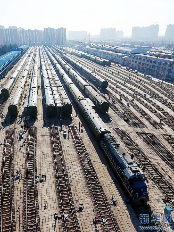 一列客車(chē)在完成編組后,駛向鄭州火車(chē)站(1月20日攝)。 春節(jié)臨近,鐵路迎來(lái)節(jié)前客流高峰。鐵路運(yùn)輸工作中,離不開(kāi)一群為火車(chē)“穿針引線(xiàn)”的人——調(diào)車(chē)員,他們24小時(shí)不間斷輪班,保證列車(chē)按時(shí)出入庫(kù),并根據(jù)車(chē)次、客流的變化,對(duì)列車(chē)車(chē)廂進(jìn)行拆分和重新編組,保障春運(yùn)期間列車(chē)安全、準(zhǔn)時(shí)運(yùn)送旅客。 鄭州火車(chē)站運(yùn)轉(zhuǎn)車(chē)間調(diào)車(chē)長(zhǎng)程浩說(shuō):“我們的工作是把一節(jié)節(jié)車(chē)廂編組成一列火車(chē),將其中有問(wèn)題的車(chē)廂換掉,送檢、清洗,再將整列火車(chē)?yán)交疖?chē)站發(fā)車(chē),形象點(diǎn)說(shuō)就是為火車(chē)穿針引線(xiàn)。”在鄭州火車(chē)站運(yùn)轉(zhuǎn)車(chē)間,調(diào)車(chē)小組一般由5人組成:一名調(diào)車(chē)長(zhǎng),四名組員。組長(zhǎng)負(fù)責(zé)指揮調(diào)車(chē)任務(wù),組員負(fù)責(zé)檢查和監(jiān)督列車(chē)車(chē)廂之間的分解與連掛,為車(chē)輛進(jìn)行排風(fēng)、摘管等。 春運(yùn)期間,鄭州火車(chē)站運(yùn)轉(zhuǎn)車(chē)間平均每天要對(duì)70余列近1300輛車(chē)進(jìn)行調(diào)車(chē)作業(yè),比平時(shí)增加30%左右的工作量。 新華社記者 李博 攝