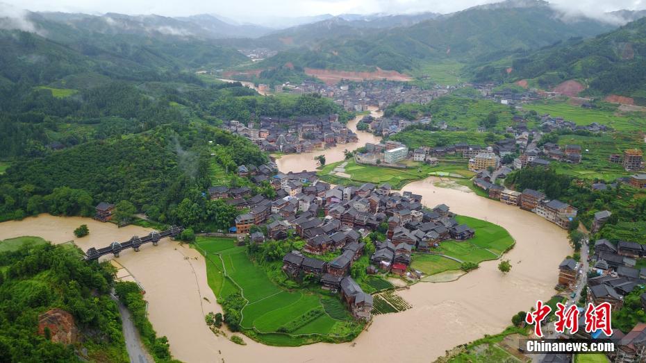 7月10日,廣西柳州市三江侗族自治縣遭受強(qiáng)降雨襲擊,該縣城程陽八寨景區(qū)內(nèi)河流水位上漲,程陽風(fēng)雨橋被洪水圍困。該景區(qū)因?yàn)?zāi)封閉,已緊急疏散滯留在景區(qū)內(nèi)的全部游客。建于1912年的程陽風(fēng)雨橋是世界歷史名橋,也是中國迄今保存較完整、規(guī)模較大的侗寨風(fēng)雨橋。圖為無人機(jī)航拍被洪水圍困的三江侗族自治縣程陽風(fēng)雨橋。龔普康 攝
