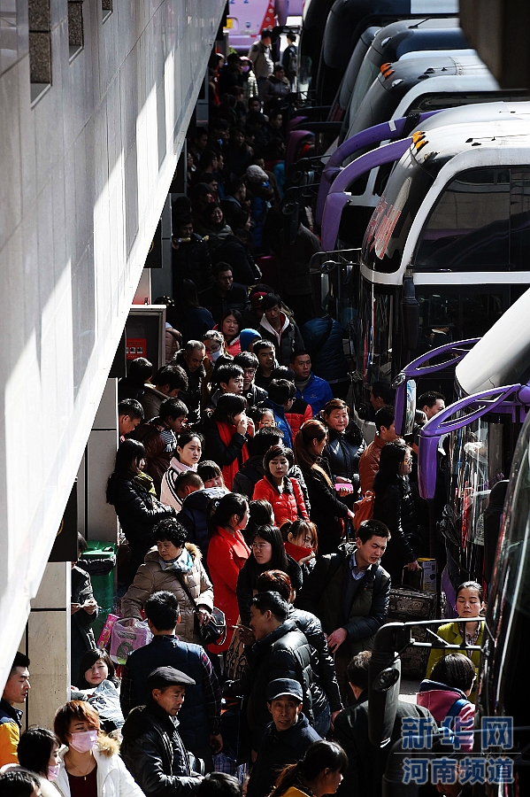 2月11日,旅客們在鄭州長途汽車中心站準備乘車。
