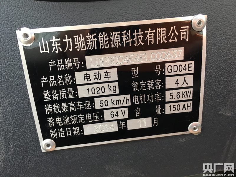 據(jù)民警檢查,該車的銘牌上只是標(biāo)明該車是“電動車”,沒有說是電動汽車,但是可以荷載4人,滿載最高時速可達(dá)到50公里/小時。