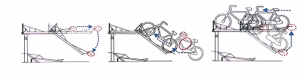 現(xiàn)場附近豎立的使用說明牌顯示,如要將共享單車放入該立體“停車器”,需將單個(gè)停車架整體拉出后垂直下壓、將單車放入停車架上,抬起停車架至水平并前推至底部即可完成停車。