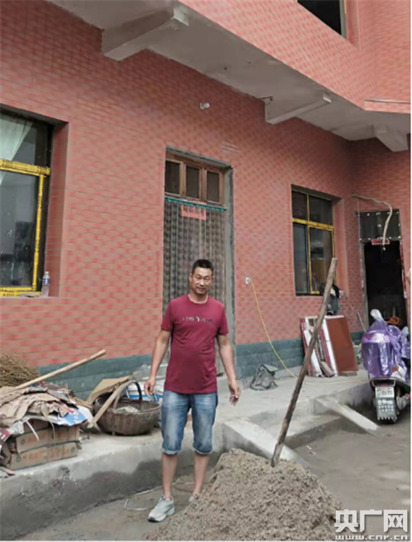 米坪鎮(zhèn)河西村脫貧戶劉建偉新建的二層樓正在貼面磚(央廣網(wǎng)發(fā) 通訊員陳紅源 供圖)