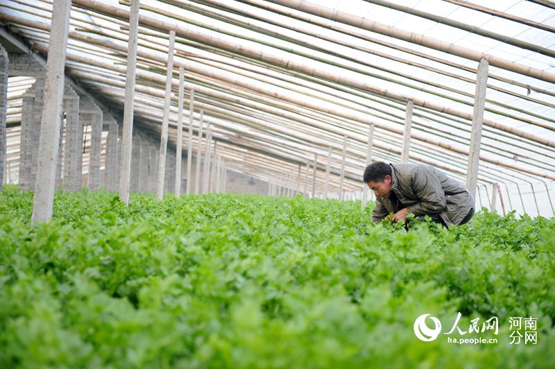 上蔡縣黃埠鎮(zhèn)蔡埠口村殘疾人高玉山在自己的大棚管理蔬菜