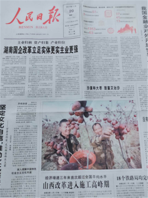 2017年11月,人民日?qǐng)?bào)頭版對(duì)大棗哥報(bào)道 !