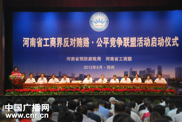 中廣網(wǎng)河南分網(wǎng)消息 (記者 聶娟)5月20日上午,由河南省預(yù)防腐敗局和河南省工商聯(lián)聯(lián)合舉辦、河南省工商界“反對賄賂、公平競爭”聯(lián)盟活動在鄭州黃河迎賓館啟動。數(shù)百家河南重點(diǎn)國有、民營企業(yè)及行業(yè)商會參加了啟動儀式,并簽名表示支持。眾多商界代表紛紛表示,此次“反對賄賂、公平競爭”聯(lián)盟啟動,標(biāo)志著河南在社會力量參與反腐倡廉建設(shè)方面邁出了堅實(shí)的一步;也將對從根本上扼住腐敗之根、抵制、預(yù)防各種腐敗產(chǎn)生,具有非常積極的意義。