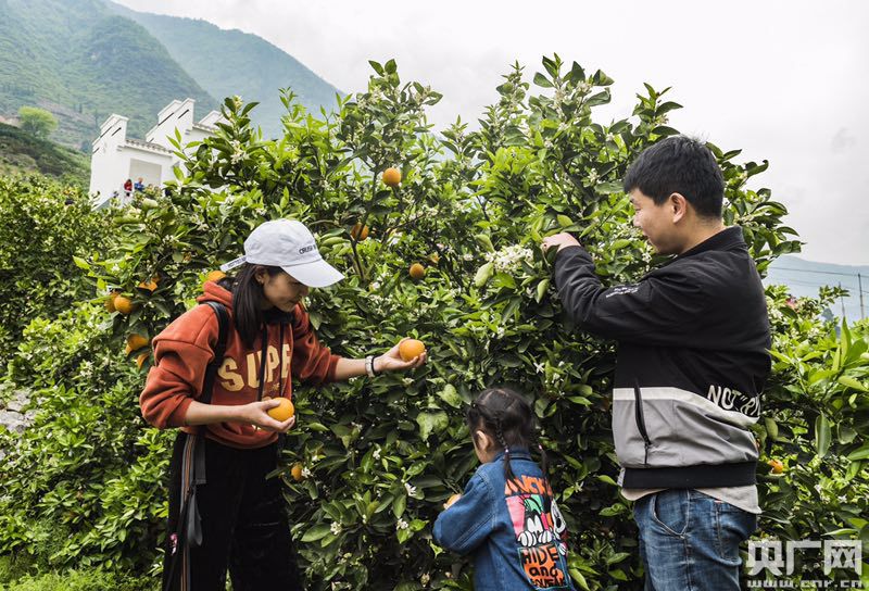 秭歸縣豐悅臍橙合作社社員劉國華樂呵呵地為游客將剛采摘的新鮮倫晚臍橙進行裝箱打包!笆昼姾筮@些橙子就可以通過快遞發(fā)出去!”劉國華自豪地指著不遠處一幢漂亮的小別墅:“臍橙果換來的!做電商、搞釆摘游,經(jīng)營方式靈活點,橙子可以更值錢。去年我家賣了16萬,在村里只是中等水平。”