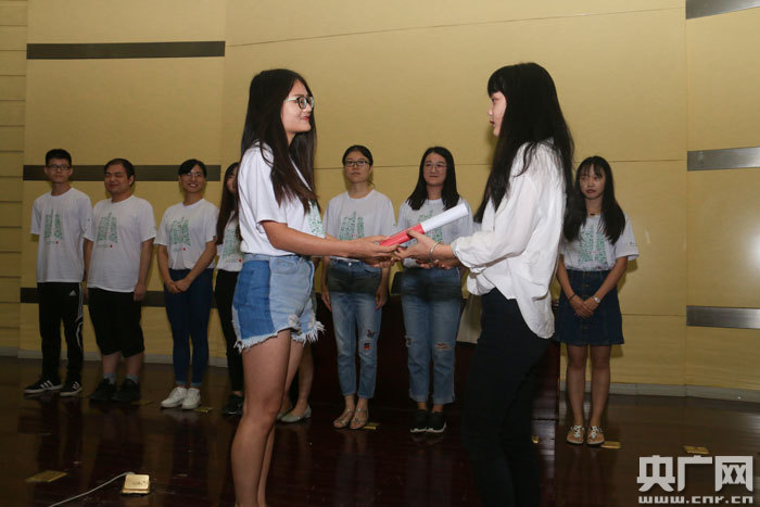 在尚鋼的帶動下,現(xiàn)場還進行了青春接力活動。外國語學院的優(yōu)秀畢業(yè)生將記錄自己榮光與奮斗的成績單作為接力棒,傳遞給大一學生,激勵他們不懈努力、不忘初心。