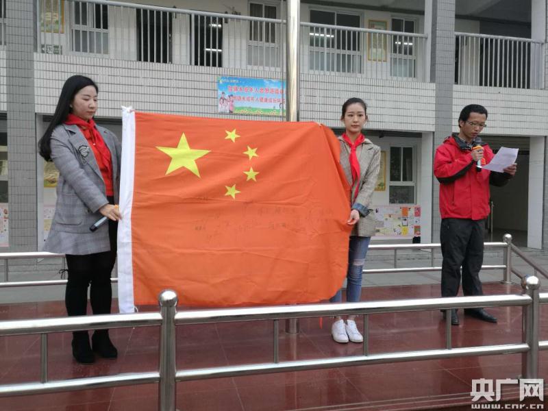 第32次南極科考隊(duì)隊(duì)員、十堰氣象臺(tái)高級(jí)工程師文強(qiáng),將南極科考站懸掛過的一面國(guó)旗,贈(zèng)送給十堰市實(shí)驗(yàn)小學(xué),并向師生們講述了這面國(guó)旗的巨大含義。據(jù)了解,這面國(guó)旗上有第32次南極科考站全部隊(duì)員的簽名,這面國(guó)旗將收藏在十堰市實(shí)驗(yàn)小學(xué)校史館里。