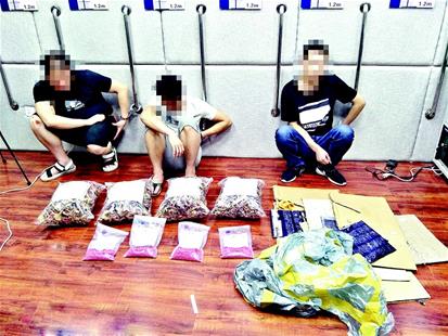 武漢海關緝私局昨透露,本月12日在警方配合下,攜緝私犬“金光”“芬迪”實施查緝,打掉一個從緬甸走私毒品到漢銷售的團伙,抓獲嫌疑人3名,查獲麻果12000顆。毒品系從緬甸走私入境到云南邊境勐?h城后,再借快遞渠道郵寄到漢,毒品暗藏快遞包裹中,以干蘑菇作掩護。楚天都市報記者謝玲 通訊員何宇翔 袁劍 實習生盧建敏攝影報道