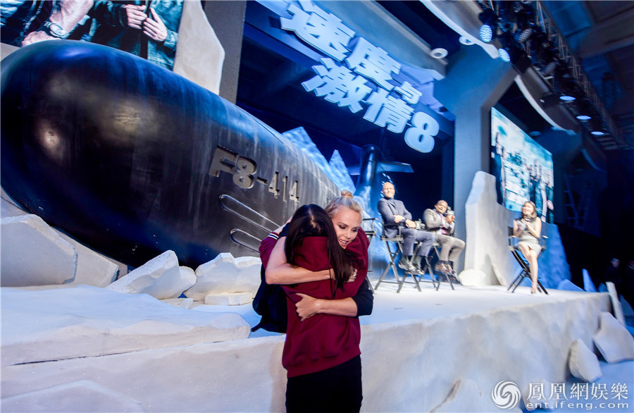 三位主創(chuàng)重現(xiàn)賽車經(jīng)典場景,共同揮舞手絹,以正宗的“速激”范兒宣布《速度與激情8》的中國之旅正式開賽。