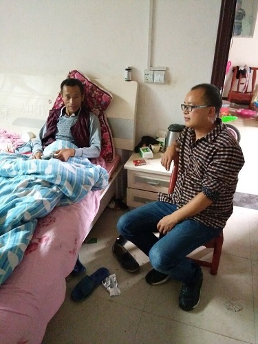 楊紅星老師在病床前看望精準(zhǔn)扶貧戶劉繼申