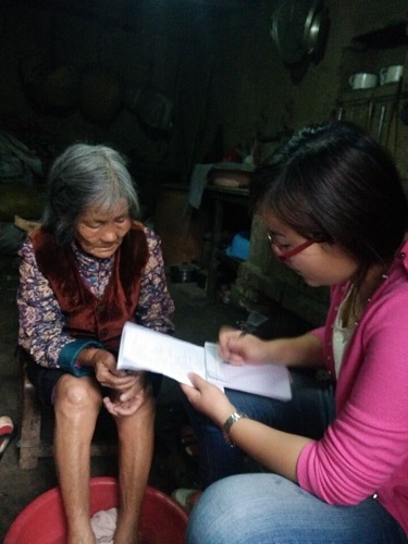 教師王麗在精準(zhǔn)扶貧戶蘇奶奶家問她身體情況及需求