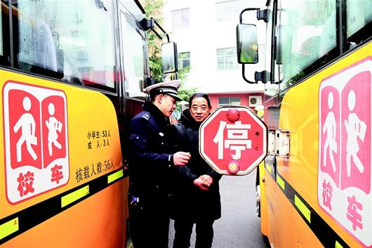 2月19日,枝江市公安局交警大隊(duì)正在對(duì)校車進(jìn)行“體檢”。春季開學(xué)在即,為了全面預(yù)防校車交通事故的發(fā)生,保障出行安全,枝江交警聯(lián)合教育局等相關(guān)部門,分批對(duì)全市76輛校車進(jìn)行全面檢查。(視界網(wǎng) 許俊富 攝)