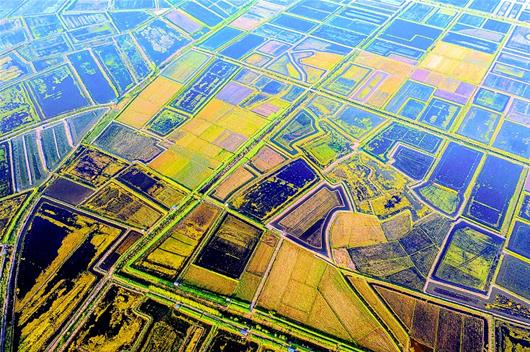 4月11日,荊州市洪湖瞿家灣鎮(zhèn)連片的稻蝦共作水田在陽(yáng)光下蔚為壯觀。荊州市大力發(fā)展水稻早晚連作、中稻再生、集中育秧,重點(diǎn)推廣稻蝦共作、稻鱉共生、稻魚共生等稻田綜合種養(yǎng)模式。荊州市的連作面積占全市水稻種植面積的三分之一,其中洪湖稻魚生態(tài)種養(yǎng)面積達(dá)到75萬(wàn)畝,到2020年,荊州市“稻蝦共作”種養(yǎng)模式面積將達(dá)到400萬(wàn)畝,為農(nóng)民增收100億元以上。 (湖北日?qǐng)?bào)全媒記者 劉曙松 攝)