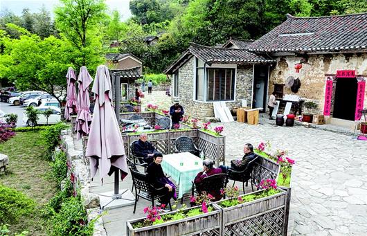 4月13日,在遠(yuǎn)安縣龍鳳村龐家灣網(wǎng)紅景區(qū)——拈花谷民宿,游客們在群山環(huán)抱的古村落里,吃農(nóng)家菜、住古民居,享受生態(tài)田園慢生活。龐家灣自明朝起為龐氏族人聚集地,有明清風(fēng)格天井房20多棟。近年來,遠(yuǎn)安縣發(fā)展全域旅游,利用龐家灣、金家灣、翟家?guī)X、武陵峽等村落的獨特地理環(huán)境與特色民居,將其打造成集吃住行、游玩娛樂購物等于一體的精品民宿旅游區(qū)。(湖北日報全媒記者 劉曙松 通訊員 黃海濤 劉中一 攝)