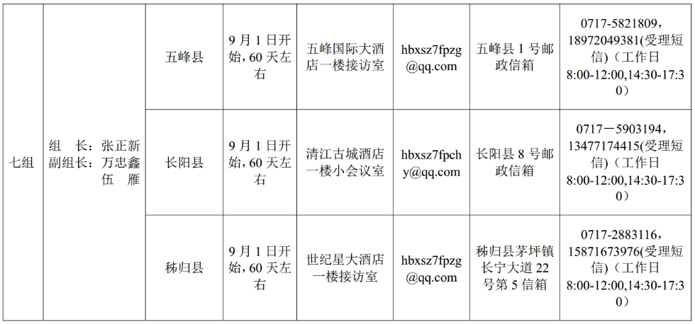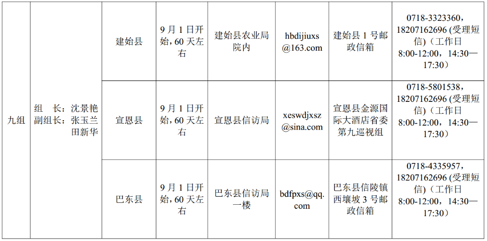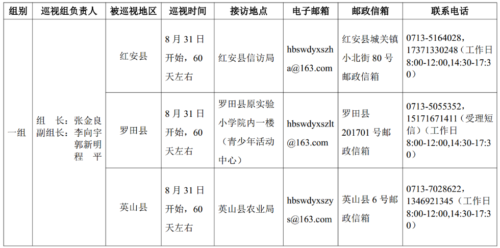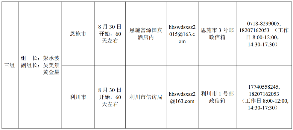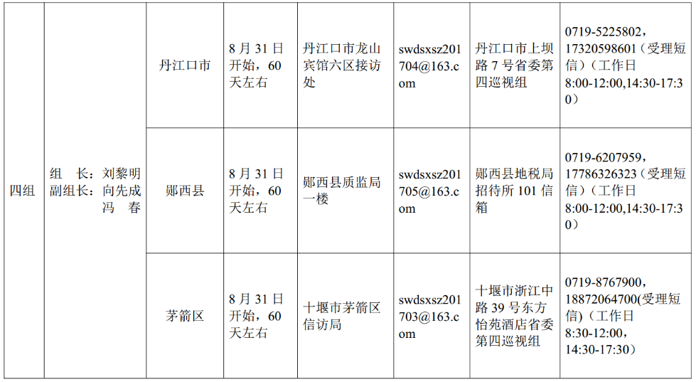 湖北省委巡視組進(jìn)駐情況一覽表