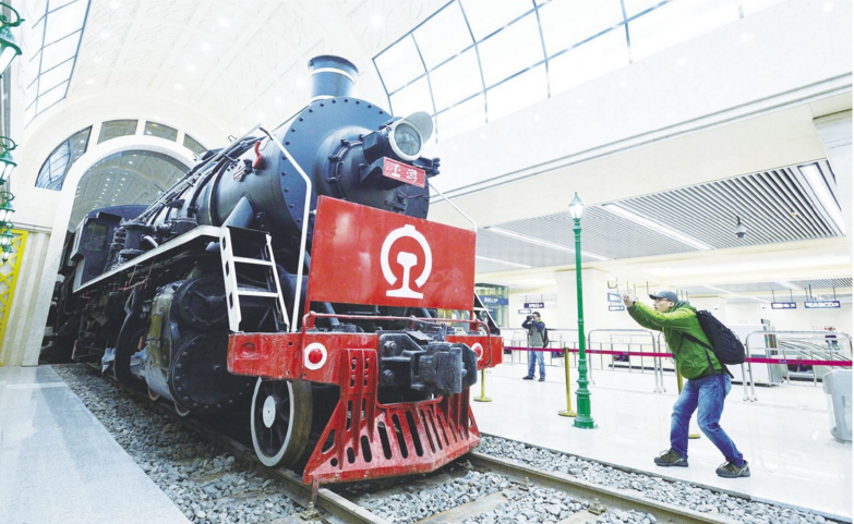進(jìn)入到地鐵6號(hào)線的大智路站點(diǎn),首先映入眼簾的就是一個(gè)老式蒸汽火車頭,“這是目前為止進(jìn)入到地鐵站點(diǎn)中最大最重的老物件!眮碜员本┏墙ㄔ旱脑O(shè)計(jì)師吳新宇介紹。