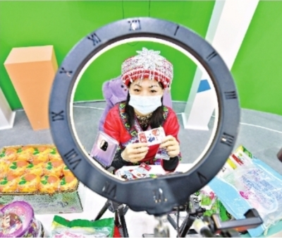 “這個是用我們荊州藕粉做的速食粉,味道真的不錯!痹谇G州展區(qū),記者看到主播正在通過鏡頭向網(wǎng)友展示新產(chǎn)品。湖北愛荷食品有限公司負責人張亮介紹,土味也有了創(chuàng)新,用藕粉做的熱干粉、香辣粉方便裝在網(wǎng)上銷售量不錯,網(wǎng)上銷售額已占總銷售額的七成。