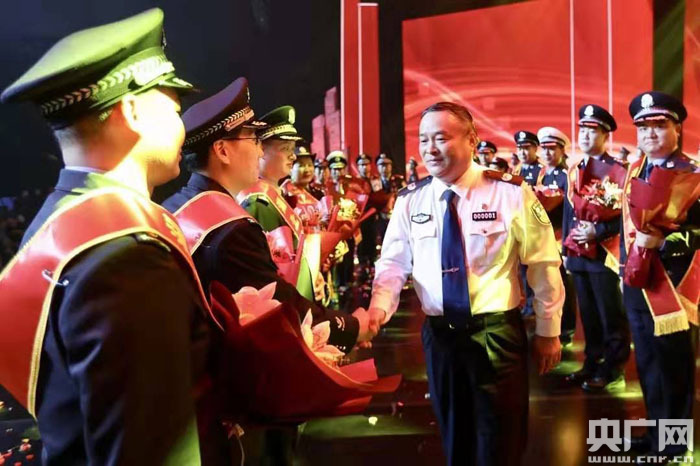 圖為:湖北省副省長、公安廳廳長曾欣祝賀獲獎?wù)?央廣網(wǎng)發(fā) 通訊員龔軒攝