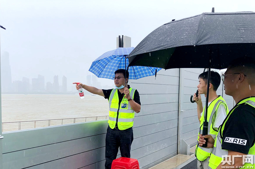 范斌帶領(lǐng)隊(duì)員在查看防汛情況(央廣網(wǎng)發(fā) 通訊員供圖)