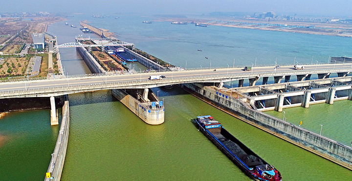 12月21日,湘江長沙綜合樞紐船閘檢修完畢,恢復(fù)雙向通航。湖南日報記者李健 通訊員胡富君 攝影報道