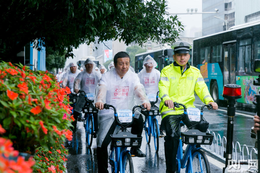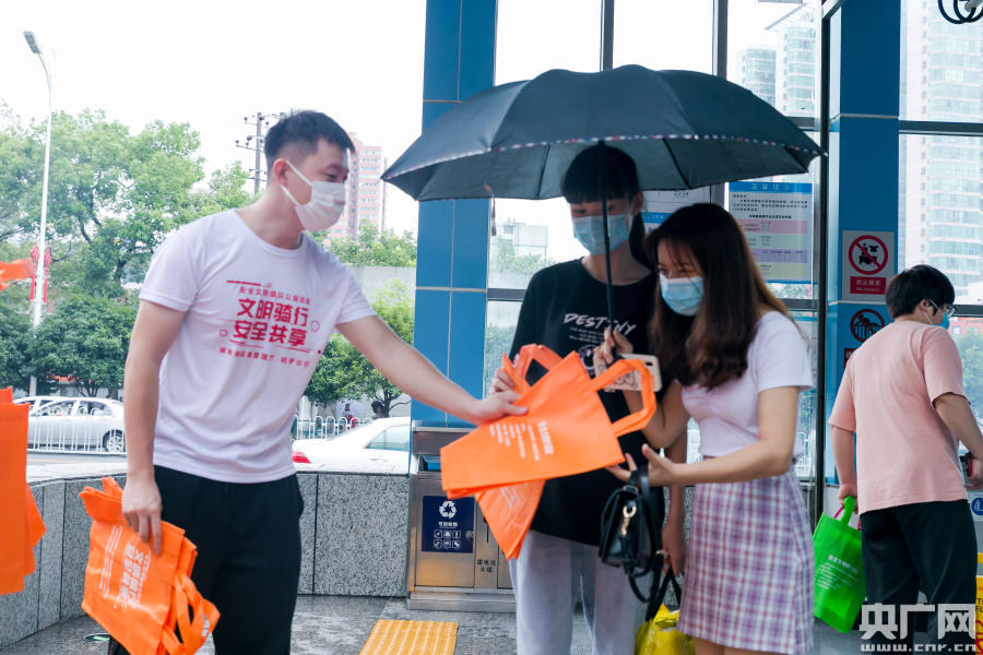 由20名志愿者組成的騎行小分隊(duì)從五一大道華美歐大廈出發(fā),吸引了很多路人的目光。盡管當(dāng)天上午長(zhǎng)沙下著雨,但絲毫沒影響到志愿者們的干勁兒。在沿線的地鐵口,志愿者向行人發(fā)放安全騎行宣傳品及倡議書。勸導(dǎo)小分隊(duì)的志愿者們?cè)谖逡宦、韶山路、解放路口,?duì)堵塞地鐵口、消防通道、學(xué)校門口、人行道的共享單車進(jìn)行了清理,并引導(dǎo)行人規(guī)范停車,對(duì)逆行、闖紅燈等違反交通規(guī)則的騎手進(jìn)行勸誡。