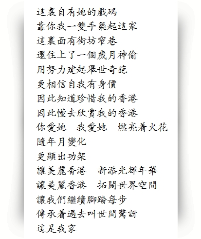 當(dāng)天記者會首次公布香港特區(qū)成立20周年主題歌曲《香港·我家》。