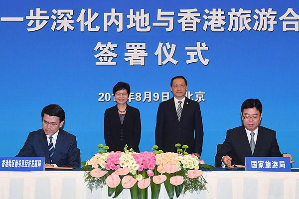 香港特區(qū)政府與國家旅游局9日在京簽署《關(guān)于進(jìn)一步深化內(nèi)地與香港旅游合作協(xié)議》,進(jìn)一步加強雙方在旅游發(fā)展領(lǐng)域的交流合作。