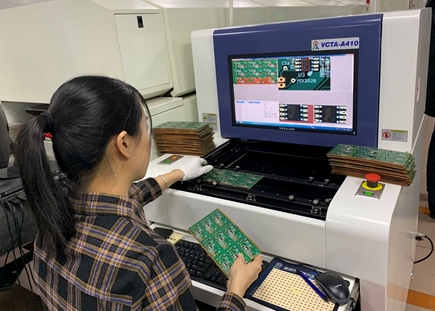 貼片車間工人仔細檢查剛出產(chǎn)的主板(央廣網(wǎng)記者 馬文靜 攝)