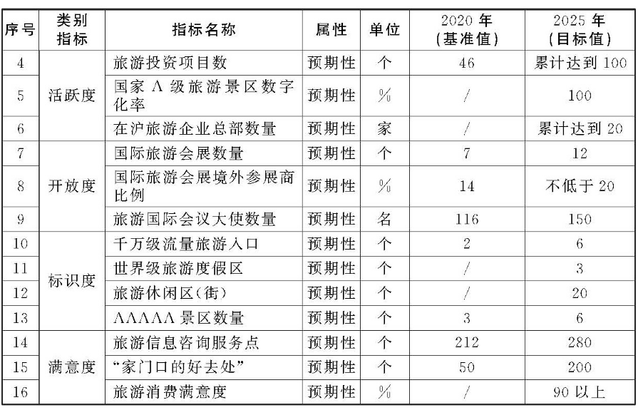 “十四五”時期,上海將建設都市旅游首選城市,建設國際旅游開放樞紐,建設亞太旅游投資門戶,建設國際數字旅游之都。力爭到“十四五”期末,上海實現旅游年總收入由2020年的3139.78億元增加到7000億元,占全市GDP比重達到6%。實現旅游重大投資項目增加至100個,千萬級流量旅游入口增加至6個,國家5A級旅游景區(qū)增加至6個,家門口好去處建成200個。