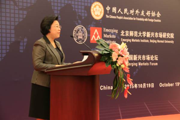 央廣網(wǎng)北京10月19日消息 “2015北京新興市場論壇”于10月19日在人民大會堂舉行。5位外國前政要、來自14個國家的20位外國專家學者、100余位中國學者和企業(yè)家參加會議。外國專家學者包括了世界銀行、國際貨幣基金組織(IMF)、地區(qū)銀行的現(xiàn)任或前任行長和高級官員。本次論壇由中國人民對外友好協(xié)會、北京師范大學新興市場研究院、美國新興市場論壇共同舉辦!2015北京新興市場論壇”的議題為“中國與新興市場”。