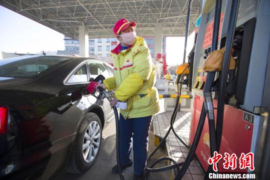 山西太原,加油站工作人員正在給車輛加油!堅啤z