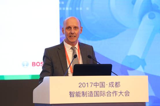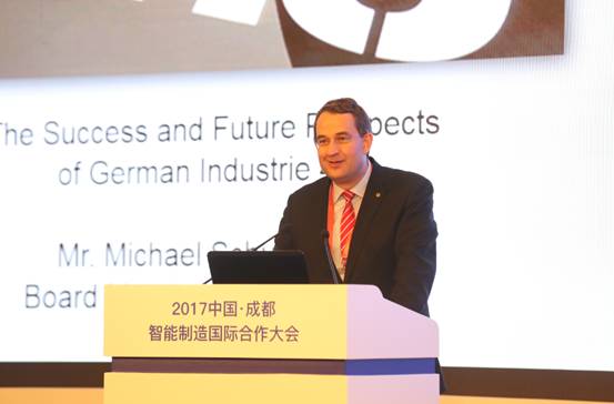為了務實探討智能制造的國際合作,此次大會特別邀請中德智能制造聯(lián)盟作為共同主辦方,希望以中德合作的成功案例為范本,以中德兩國優(yōu)秀智能制造企業(yè)的發(fā)展經(jīng)驗,為國際間合作和成都制造業(yè)的加速發(fā)展提供有價值的借鑒。來自德國聯(lián)邦經(jīng)濟發(fā)展與外貿(mào)協(xié)會董事邁克爾·舒曼在會議上發(fā)表主題演講。他提到,工業(yè)4.0并不是第四次的工業(yè)變革,或者一系列具體的技術變革,提到工業(yè)4.0時要強調的是政策的推動和戰(zhàn)略的推動所帶來的成功,工業(yè)4.0推動了制造行業(yè)的數(shù)字化,包括智能工廠、人機工程、互聯(lián)網(wǎng)物聯(lián)網(wǎng)的建設都是它所取得的成績。