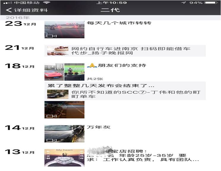 丁偉23歲,是標準的“富二代”:家族在江蘇周邊常年經營珠寶生意,平日生活富足;出入各種高檔場所,駕駛價值百萬跑車。去年底,在父親的支持下,丁偉創(chuàng)立町町單車,初期投資2000萬!拔野謰寔砩虾U椅,發(fā)現我有跑車、轎車、代步車,為啥不開,要騎自行車?當時他們覺得模式不錯,去年7、8月摩拜也剛開始,大街上只有摩拜,Ofo還沒大批上路,我父親覺得可以copy一下,說‘咱們在南京也整一個’!倍フf。