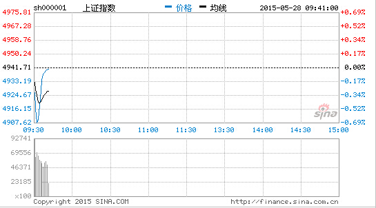 央廣網(wǎng)北京5月28日消息 據(jù)經(jīng)濟(jì)之聲《交易實況》報道,周四開盤,兩市開盤漲跌不一,滬指報4943.74點,漲2.03點,漲幅0.04%,深成指報16953.60點,跌9.92點,跌幅0.06%,創(chuàng)業(yè)板報3618.34點,跌10.33點,跌幅0.28%。