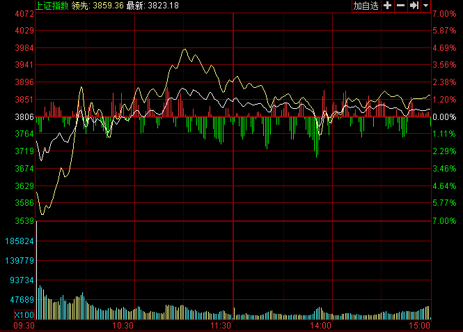 央廣網(wǎng)北京7月16日消息 據(jù)經(jīng)濟之聲《交易實況》報道,周四早盤,滬深兩市雙雙低開,滬指一度跌逾3%失守3700點關口,最低跌至3688.44點后,探底回升翻紅,之后一路震蕩拉升,臨近午盤,漲幅收窄,午后開盤,滬指呈回落趨勢,后一度在3800點展開紅綠爭奪,盤面上,昨日護盤英雄石油、銀行等權重股今日較為低迷威風不在,創(chuàng)業(yè)板最低跌近6%到漲逾3%,振幅達10%,兩市逾1500股上漲,逾百股漲停,臨近盤尾,滬指漲幅縮小。