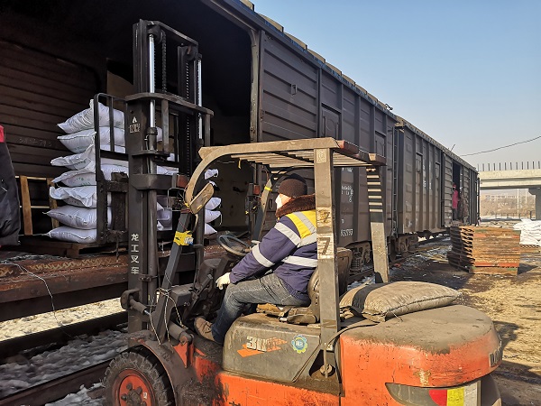 化肥等待裝車(哈爾濱局供圖)