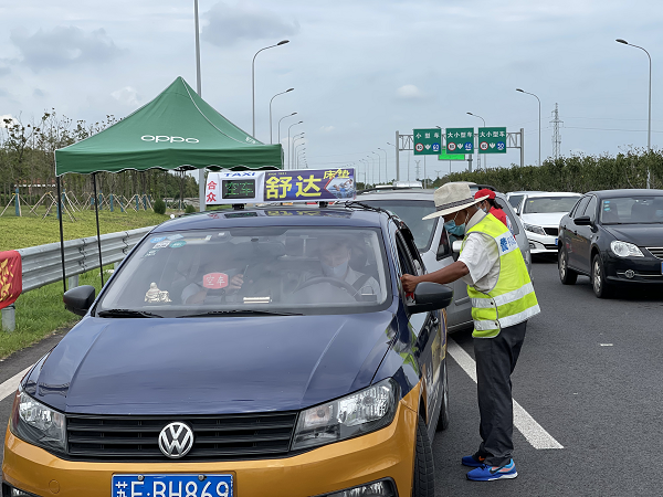 “您好,請出示您的健康碼、行程碼!“每天中午12點,天氣最炎熱的時候,平潮鎮(zhèn)四十里村的退休黨員郭永忠都會準時來到通皋大道的防疫卡口,穿著紅馬甲協(xié)助交警展開車輛檢查蘇康碼、行程碼,維持通皋大道交通秩序。 “作為一名黨員,防疫工作再累再苦,只要保障好人民安全,我們無怨無悔。”