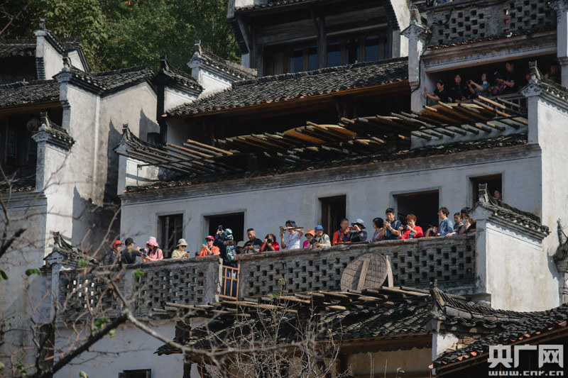 金秋十月,篁嶺的秋色已經(jīng)十分濃烈,在這個(gè)近六百年歷史的徽式村落上,曬滿了色彩斑斕的曬盤(pán),層層疊疊,十分壯觀。隨著入秋時(shí)間漸長(zhǎng),村落的美國(guó)紅楓葉子開(kāi)始轉(zhuǎn)紅,粉墻黛瓦在色彩斑斕的葉子掩映下,如中國(guó)山水畫(huà)般詩(shī)情畫(huà)意。秋天的陽(yáng)光里,這個(gè)建在懸崖上的美麗山村,將鄉(xiāng)村旅游的風(fēng)采徐徐展開(kāi),帶給國(guó)外朋友最美的小鎮(zhèn)風(fēng)光和民俗文化。