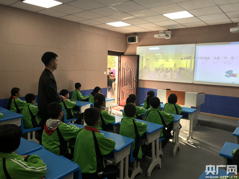 石人鄉(xiāng)小學(xué)與上饒市重點小學(xué)同步上音樂課(央廣網(wǎng)發(fā) 于子敬攝)