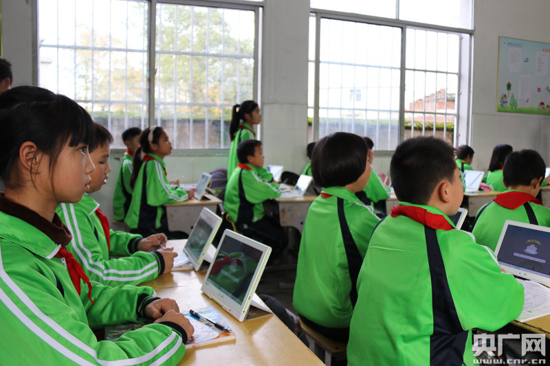 石人鄉(xiāng)學(xué)生使用平板端學(xué)習(xí)數(shù)學(xué)(央廣網(wǎng)發(fā) 于子敬攝)