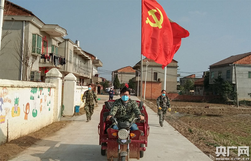 央廣網(wǎng)南昌2月1日消息(記者王一凡 通訊員胡雪萍)“稍息,立正!我們出發(fā)!”2月1日,天剛蒙蒙亮,塘南鎮(zhèn)塘南村退役軍人陳東華和兩個侄子已經(jīng)整裝待發(fā)。他們?nèi)蓑T著三輪車,背著裝滿消毒液的噴灑器游走在鄉(xiāng)間,義務(wù)給村民噴灑消毒液。