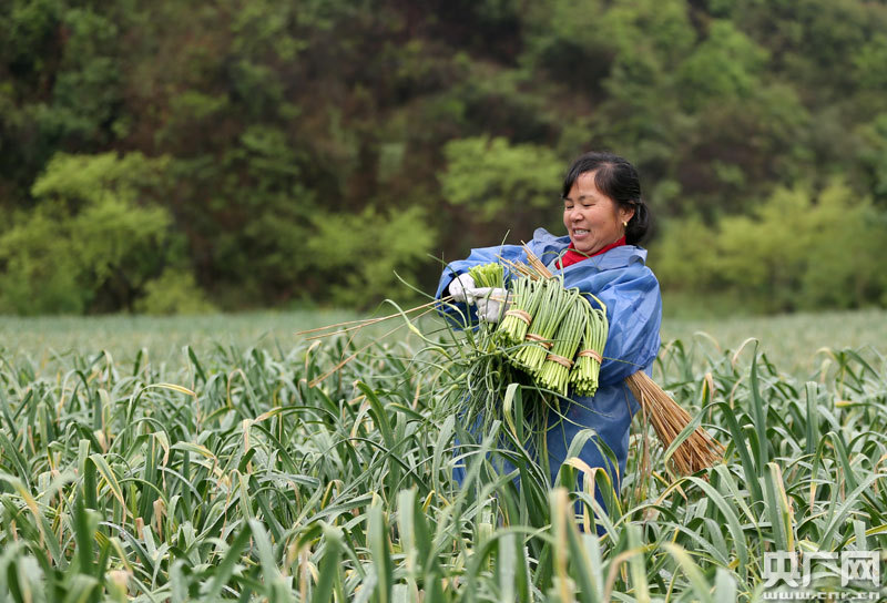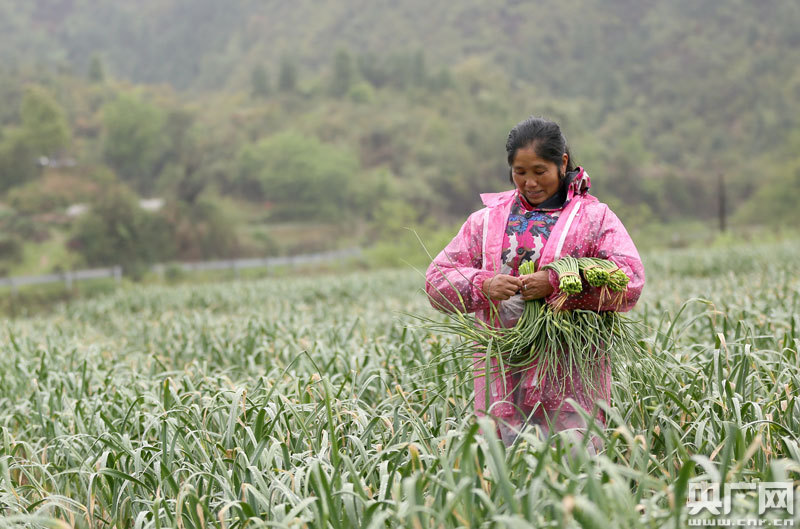 3月31日,江西省吉安市吉水縣螺田鎮(zhèn)大坵灣村,蒙蒙細(xì)雨中,一片豐收的歡聲笑語,村民們正在蒜田中收獲蒜苔。