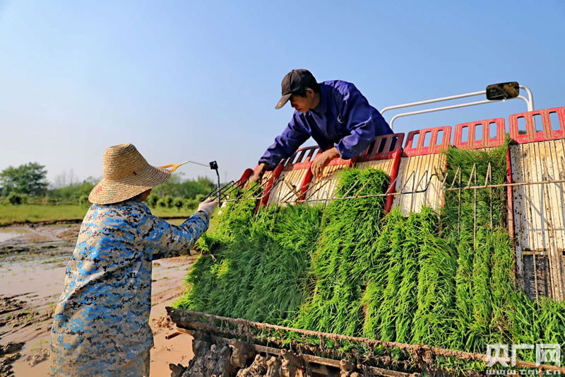 4月16日,在江西省吉安市吉水縣黃橋鎮(zhèn)太坪村,村民們正搶抓有利時(shí)機(jī)在田里忙著機(jī)插早稻穩(wěn)生產(chǎn),該縣已派出農(nóng)業(yè)技術(shù)人員下到各鄉(xiāng)鎮(zhèn)村組,指導(dǎo)農(nóng)民科學(xué)種田,進(jìn)一步提高早稻產(chǎn)量,增加農(nóng)民收入,預(yù)計(jì)全縣55萬余畝早稻將于4月底全部插上秧苗。